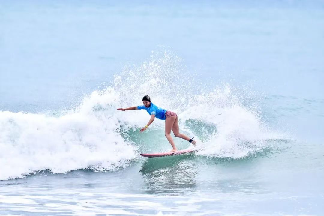 本次赛事分为职业积分赛(QS4000)和青少年比赛(JR1000)两大项目,按男女分组进行比赛。值得关注的是,本次比赛为中国选手提供了宝贵的参赛机会,让他们在家门口的国际高水平赛事中得到了锻炼,中国青少年女子选手的表现尤为亮眼。海南省运动员王静微一路过关斩将,在决赛中凭借7分和6.5分的两道浪,荣获女子青少年组冠军策略宝,这是中国冲浪运动员首次在WSL赛事青少年组中折桂。17岁的山西选手巫幺妹也成功闯入女子青少年组半决赛,且多次冲出单浪7分以上的佳绩。